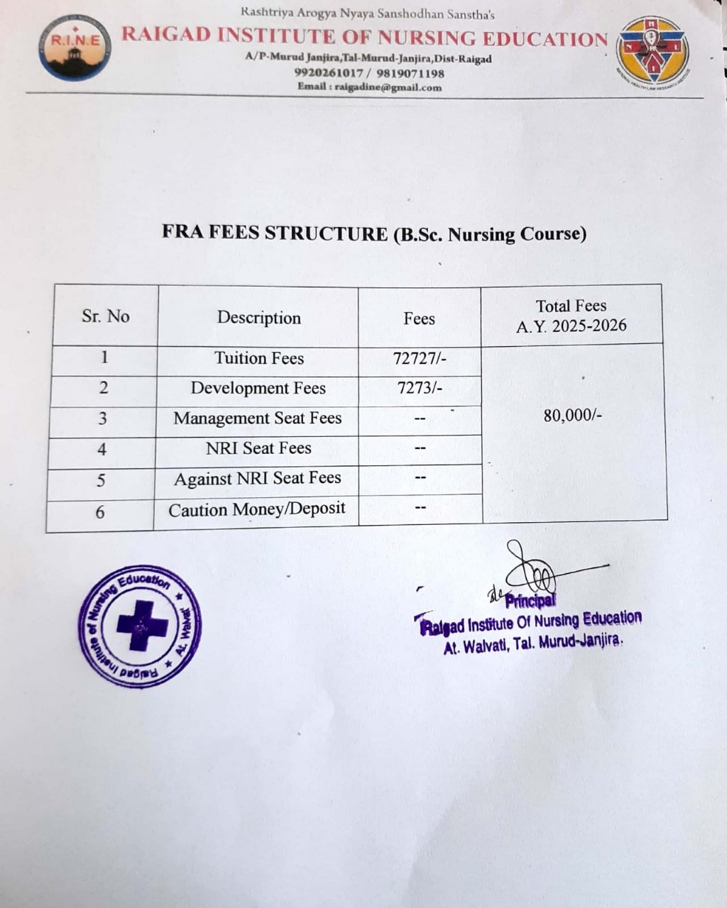 Raigad Institute of Nursing Education, Murud is run by the Rashtriya Aarogya Nyaya Sanshodhan Santha, thane. The college was established in year 2023 to fulfil this vision by rendering dedicated service to the cause of education.